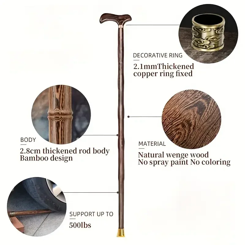 Kävelykeppi , kestävä puinen kävelykeppi säilytyspussilla.