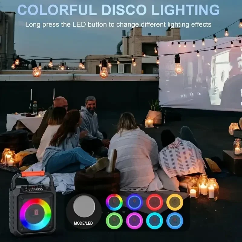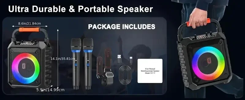 Tämä kannettava karaokekone on varustettu suurella akulla ja ladattavalla toiminnolla, joka tarjoaa 8-10 tuntia peliaikaa, mikä varmistaa, että juhlasi ei häiritse