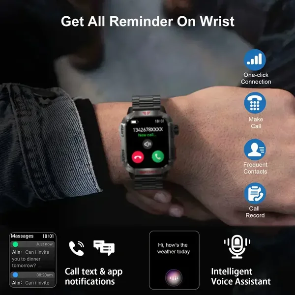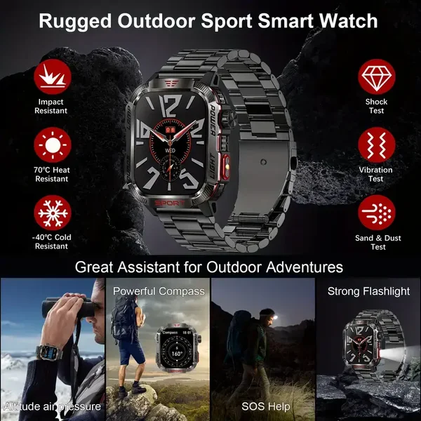 Tämä miesten kestävä ulkoilu-älykello on suunniteltu erityisesti aktiiviseen elämäntapaan ja ulkoiluharrastuksiin. Sen tärkeimpiä ominaisuuksia ovat:
