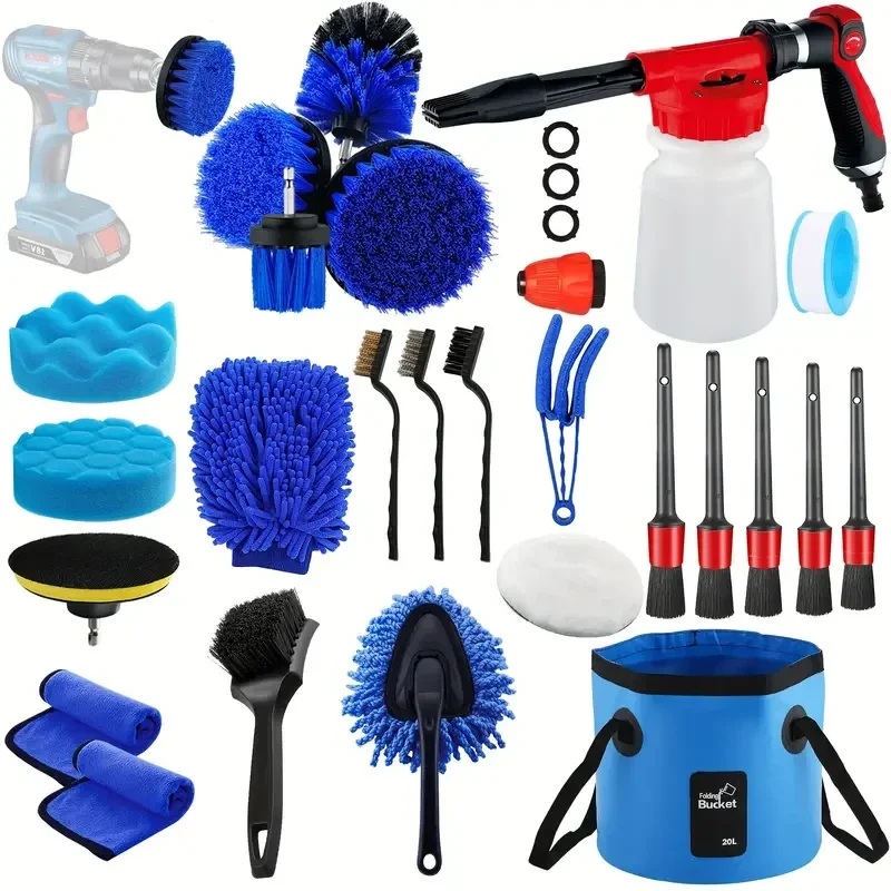 Täydellinen Autonpesu- ja Kiillotussarja: PVC-porakoneharjaliitteet, Kiillotusharjat, Vaahtopistooli ja Levitystyynyt - Ei Vaadi Akkua