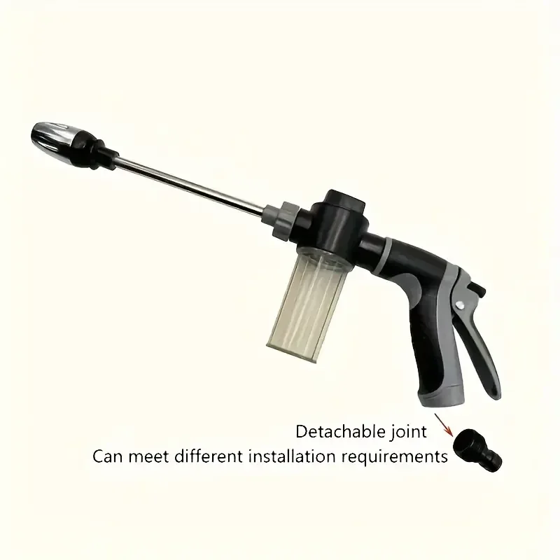 Tämä korkeapaineinen autonpesuvaahtopistooli on suunniteltu helpottamaan auton pesua ja puhdistusta. Pitkän varren ja säädettävän suihkusuuttimen avulla voit helposti kohdistaa vaahdon eri alueille. Sarja sisältää: