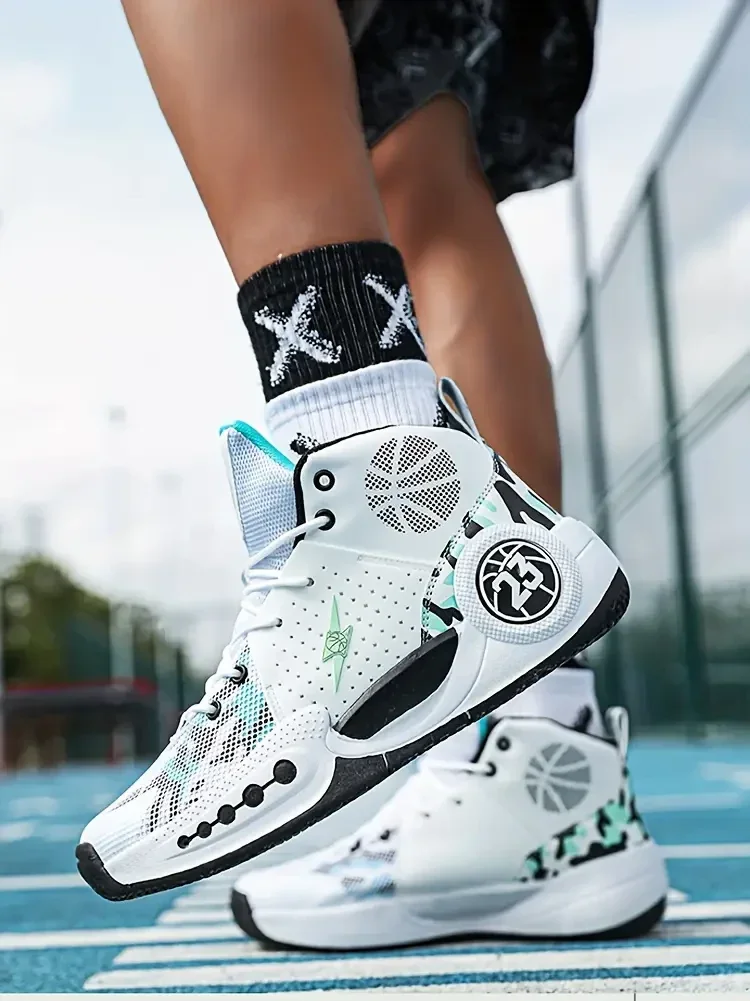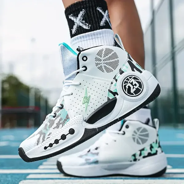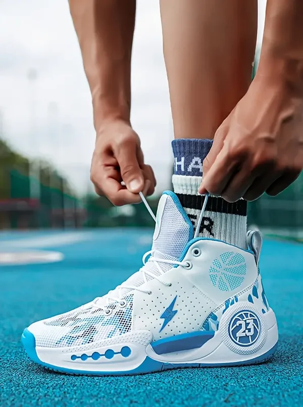 Miesten Hengittävät Koripallolenkkarit - Mukavat, Liukumattomat, Iskunvaimentavat Nauhalliset Lenkkarit Sisä-/Ulkoharjoitteluun ja Juoksuun