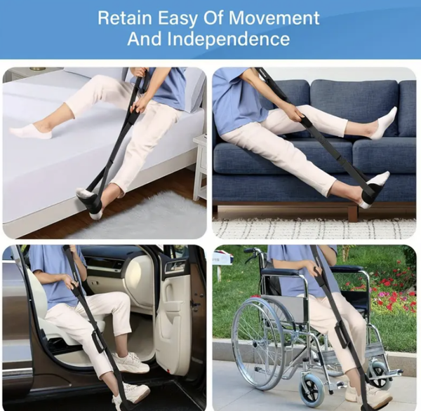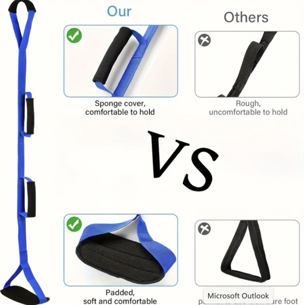 Jalannostin hihna pehmustekahvalla, saat kätevästi kipeän jalan sänkyyn ja pois. Pääset helposti ja nopeasti nukkumaan, Mukana automatkalle.