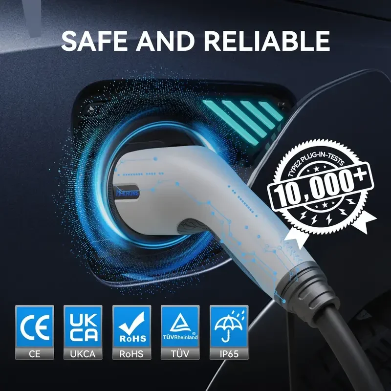 Standardi IEC62196 type 2 Sopii kaikkiin sähkö/hybridi autoille. Toimitus sisältää 22kW latausaseman Pikalatausoppaan, seinäkiinnitystelineen