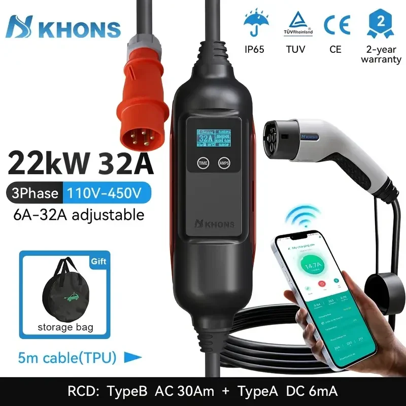 Kannettava tai seinään asennettava sähköajoneuvon laturi • 22 kW kapasiteetti • Virta säädettävissä 6A:sta 32A:han (sopii eri virran tasoille) • Toimii jännitealueella 200V - 415V