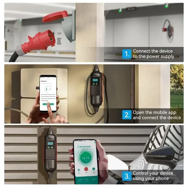 Latauksen käynnistys: Käytä app-sovellusta tai liitä pistotulpalla → Aseta aika/nykyhetki → Aloita lataaminen 2️⃣ Itseohjautumismoodi Liitä → Muokkaa AMPS/AIKAA 1.54" näytöllä → Aloita lataaminen