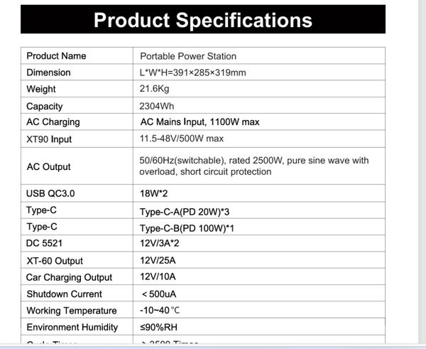 Varavirtapankki, Sähköasemaa 2500W + 400W aurinkopaneelit