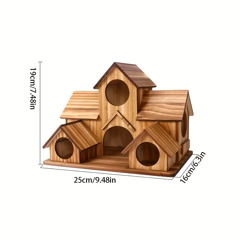 Lintutalo, 5-reikäinen linnutalo ulkoruokinta-alueelle . Käsinmaalattu puinen säänkestävä lintulauta , sopii puutarhan ja pihan-alueen koristeeksi. Mitat : 25x19x16cm