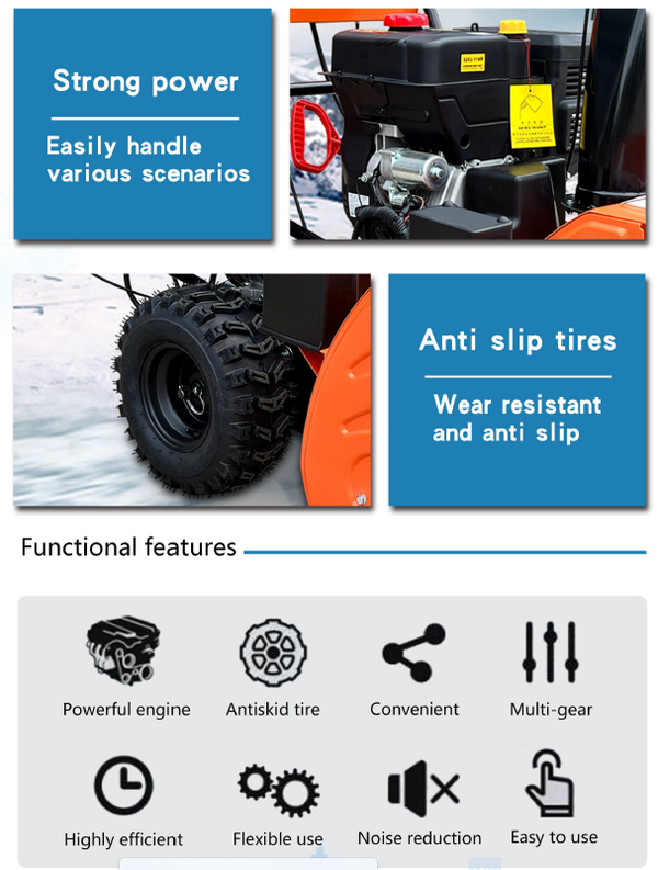 Heittoputken suunta kääntyy 190astetta suuntaansa vasemmalle ja oikealle. Heittää jopa 560mm paksuisen lumen 10-15metrin päähän.
