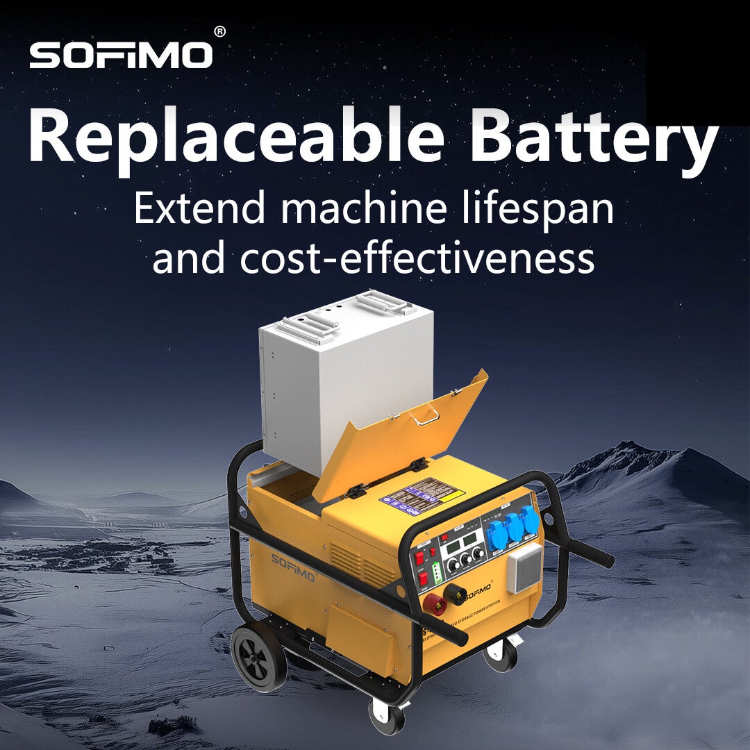 SOFIMO ES‑3000 on teollisuustason hitsaus- ja virransyöttöasema, joka yhdistää 200A hitsausvirran, 220V AC‑ulostulot ja suuren energianvaraston yhteen liikuteltavaan yksikköön. CE‑sertifioitu, ISO‑hyväksytty ja suunniteltu raskaaseen kunnossapitoon putkistoissa, petrokemian laitoksissa ja teollisuudessa.