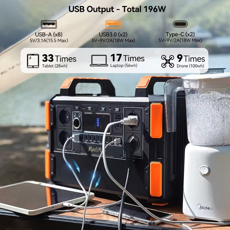 aurinkosähköllä, 1041.6Wh 230V (2000W puskurit) hätäpakki mökille sähkökatkon varalle. LFP-akun sähkögeneraattori. Ulosotot : 4 kpl sukopistorasia /230V , 19 kpl muita ulosotto pistokkeita ja lataustapoja varten. Kyseessä kätevä kannettava varavoima sähköasema. Tarpeen vaatiessa saat sähköä tästä moneen tarpeeseen esim.sähköautolle- mökille-telttaretkelle- tietokoneille-vesipumpulle-kodinkoneille-työkaluille yms... Suositellut käyttöpikat : Monia käyttökohteita ,joista esim. saat hätätilanteessa latausvirtaa sähköautolle ja mm. kesämökillä etätyökäyttöön, retkelle tai hätätilanteisiin. Tyyppi: Kannettava generaattorityyppinen. Tätä voi ladata myös aurinkosähköllä.