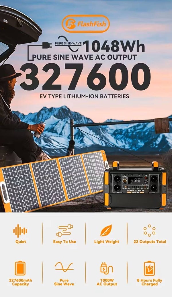 Latausta mökille ja tienpäälle .Kannettava sähköasema 1000W Lifepo4 akulla. Ladattavissa